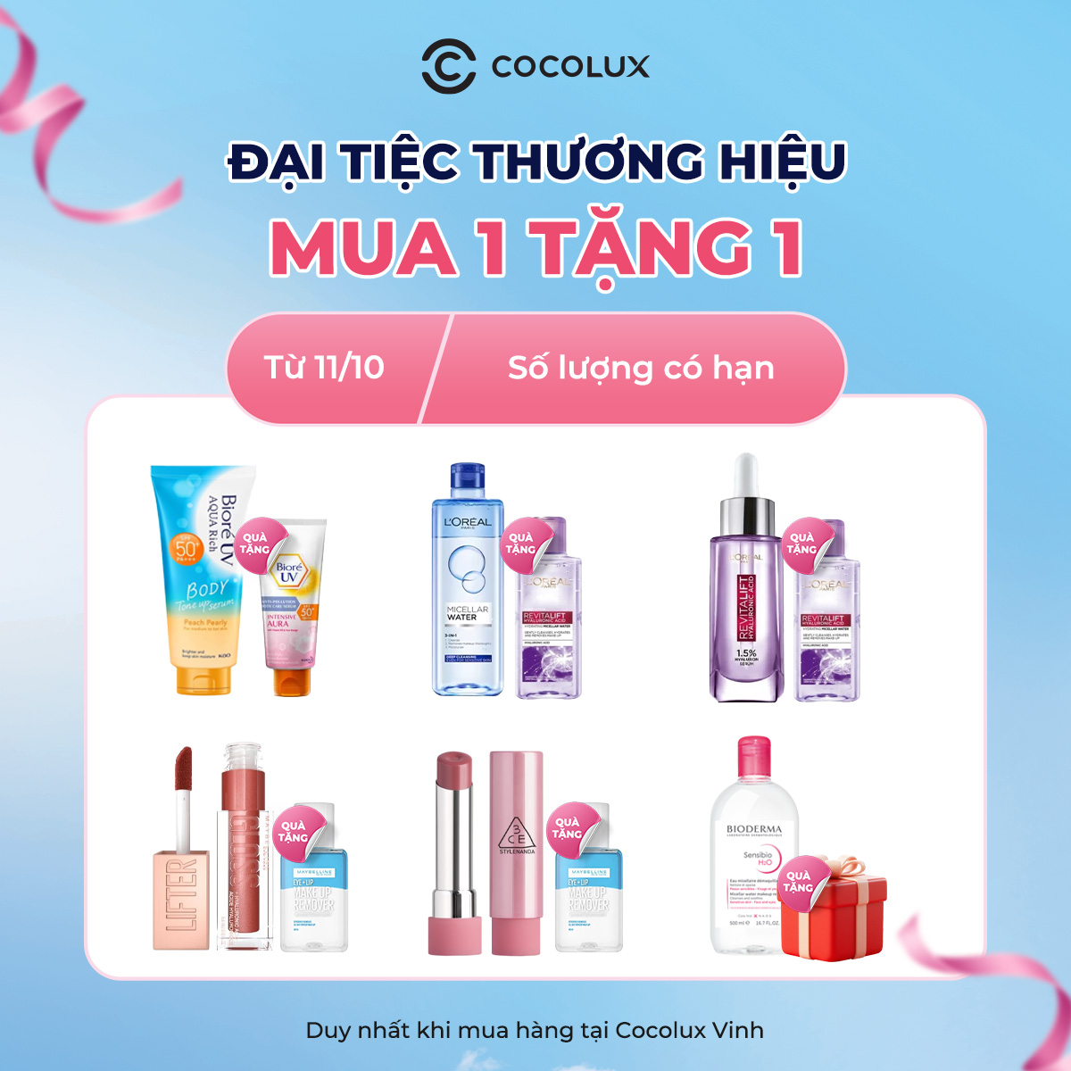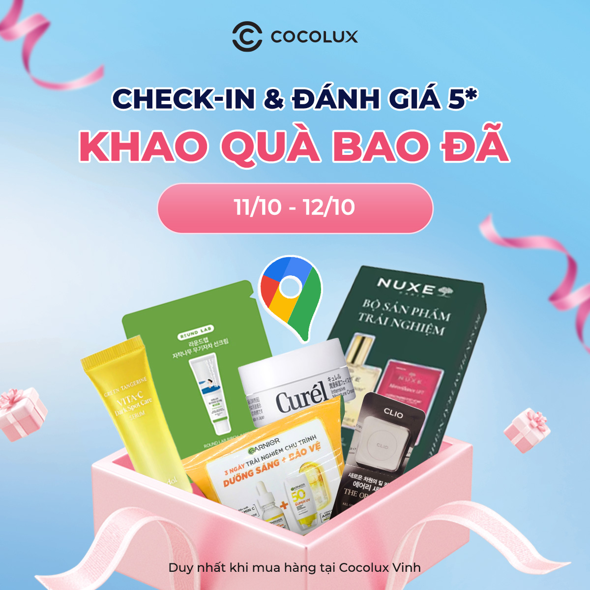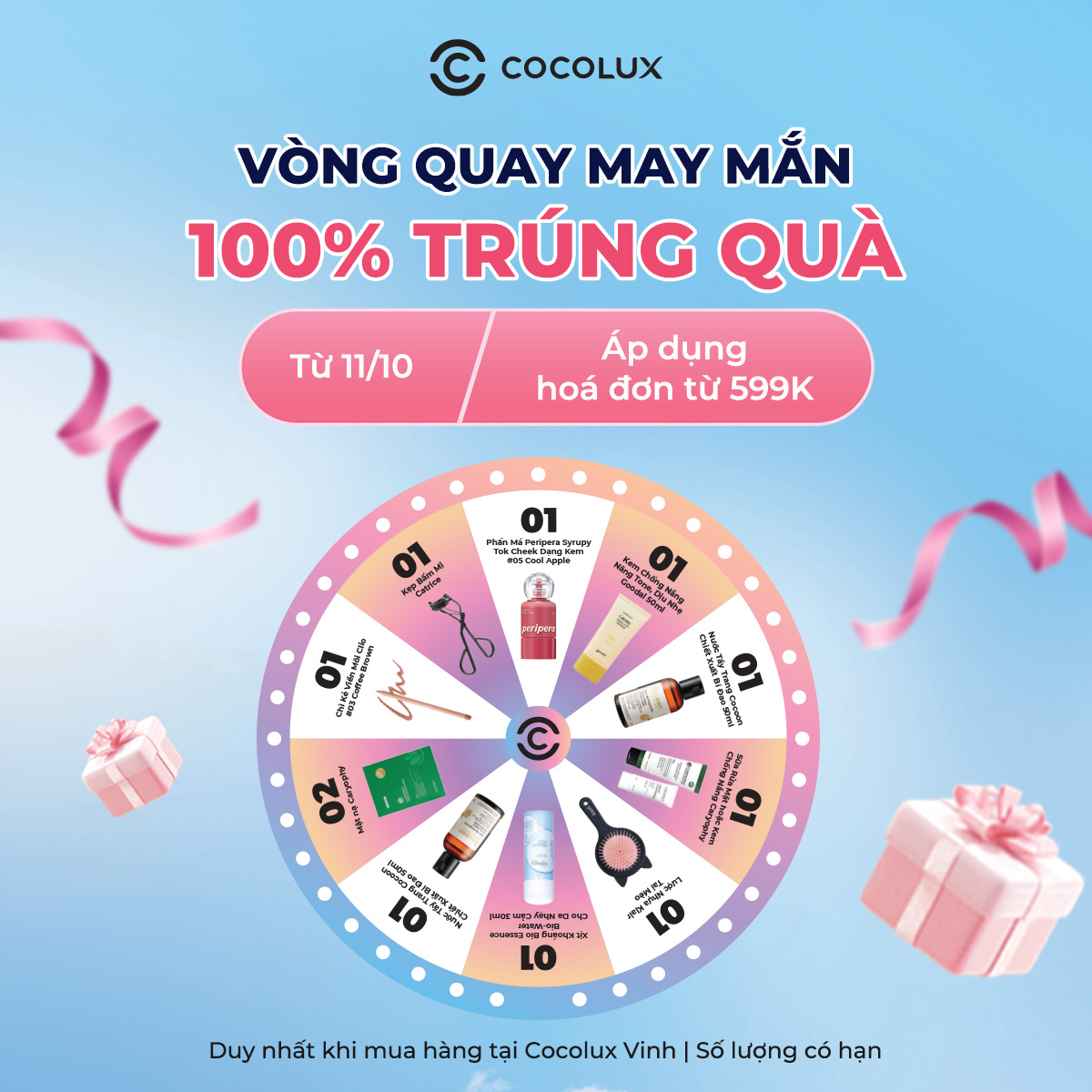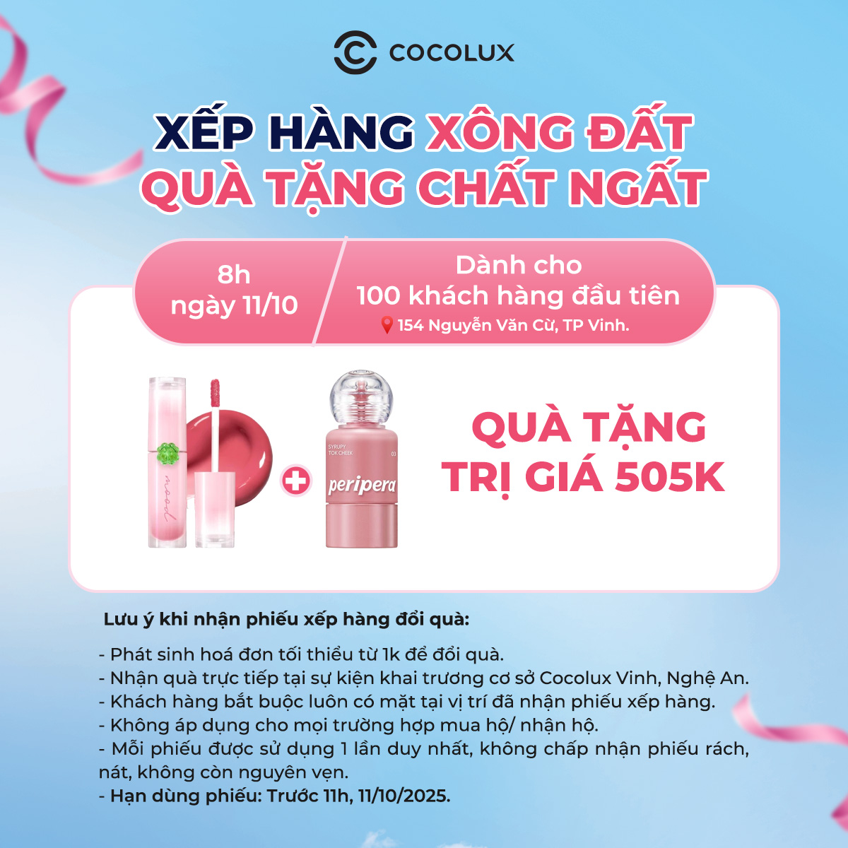Vào 8h sáng ngày 11/10/2025, 100 khách hàng có mặt và nhận phiếu xếp hàng sớm nhất tại cơ sở Cocolux 154 Nguyễn Văn Cừ, TP Vinh, Nghệ An sẽ nhận được ngay combo Quà tặng trị giá 505k gồm: