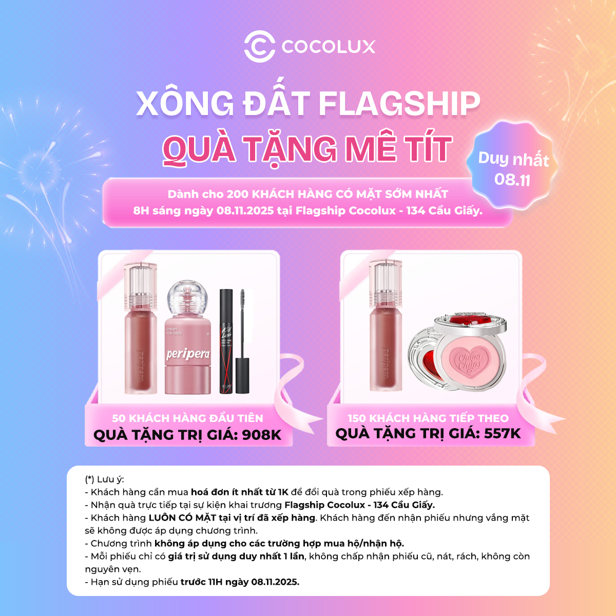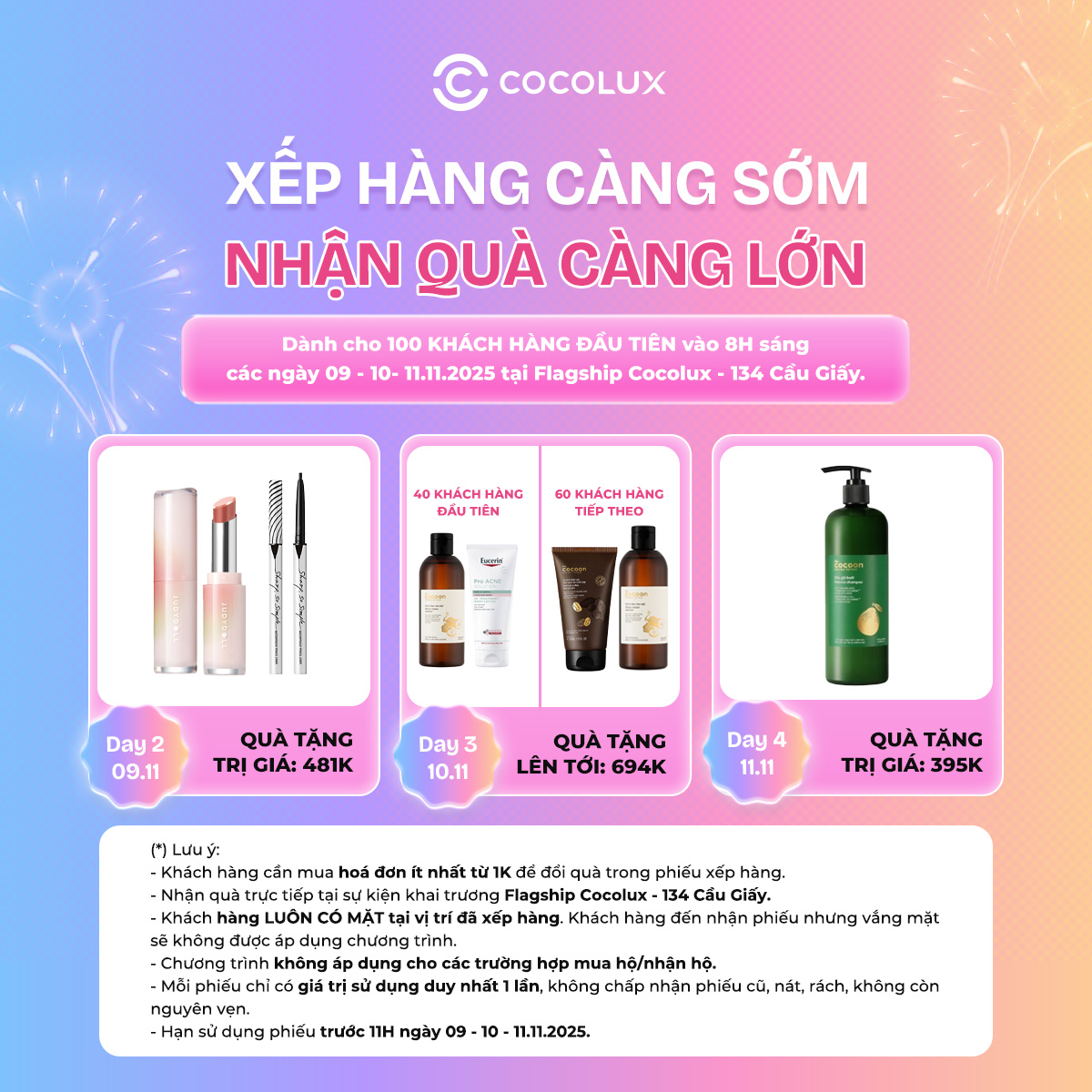 Dành cho 100 KHÁCH HÀNG ĐẦU TIÊN vào 8H sáng các ngày 09 - 10 - 11.11.2025 tại Flagship Cocolux - 134 Cầu Giấy.