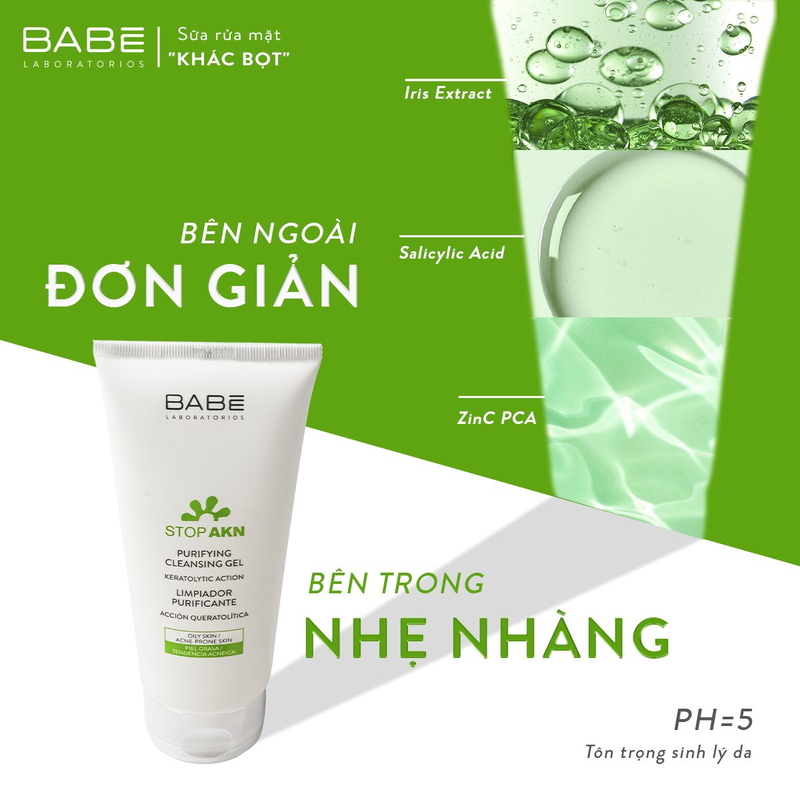 Sữa rửa mặt BABE STOP AKN Purifying Cleansing Gel | |