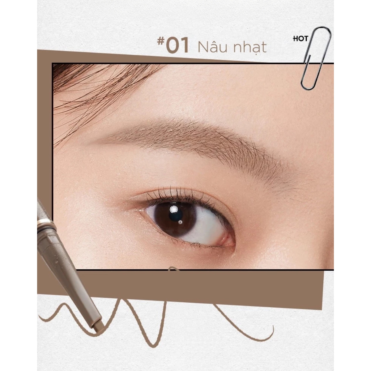Thiết kế tiện lợi với đầu chì siêu mảnh cùng cọ chải đi kèm giúp bạn dễ dàng tán đều, tạo dáng mày tự nhiên và mềm mại. Đây là lựa chọn hoàn hảo cho những ai mong muốn có hàng lông mày gọn gàng, cân đối mà vẫn giữ vẻ đẹp nhẹ nhàng, tự nhiên.