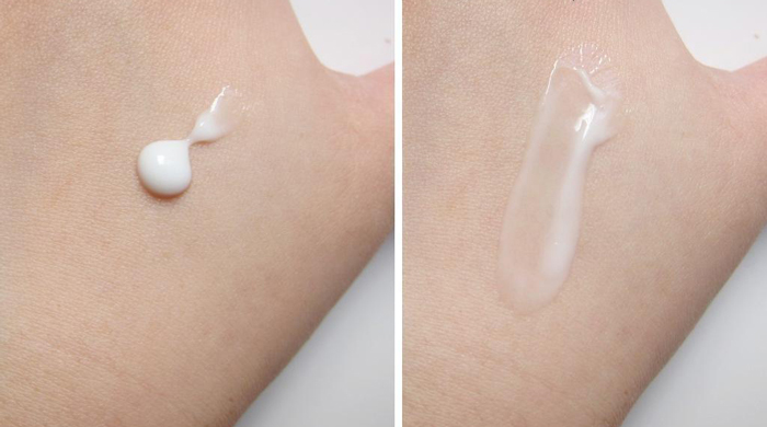 Kết cấu kem dưỡng dạng đặc, màu trắng thẩm thấu nhanh lên da tạo nên lớp màng mịn màng, không gây bết dính.