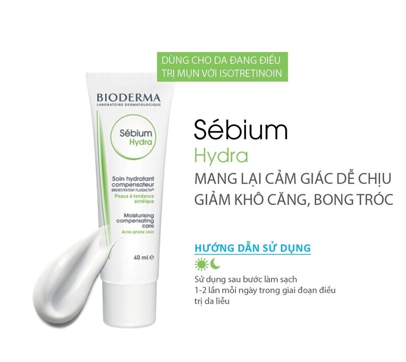 Kem Dưỡng Ẩm Cho Da Khô, Mụn Bioderma Sébium Hydra 40ml là dòng dưỡng ẩm dành riêng cho làn da khô, da dầu, da mụn, da nhạy cảm bán chạy của hãng. Đây là sản phẩm ưu việt, với phức hợp Fluidactiv™ (thành phần độc quyền của hãng) có tác dụng điều tiết lượng bã nhờn, làm thông thoáng lỗ chân lông, ngăn ngừa sự hình thành của mụn.