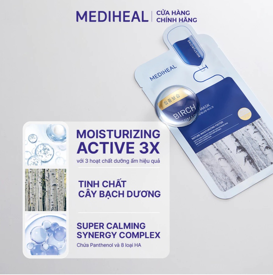 • Chứa bạch dương và ba loại hoạt chất dưỡng ẩm để cung cấp độ ẩm chuyên sâu cho làn da xỉn màu.