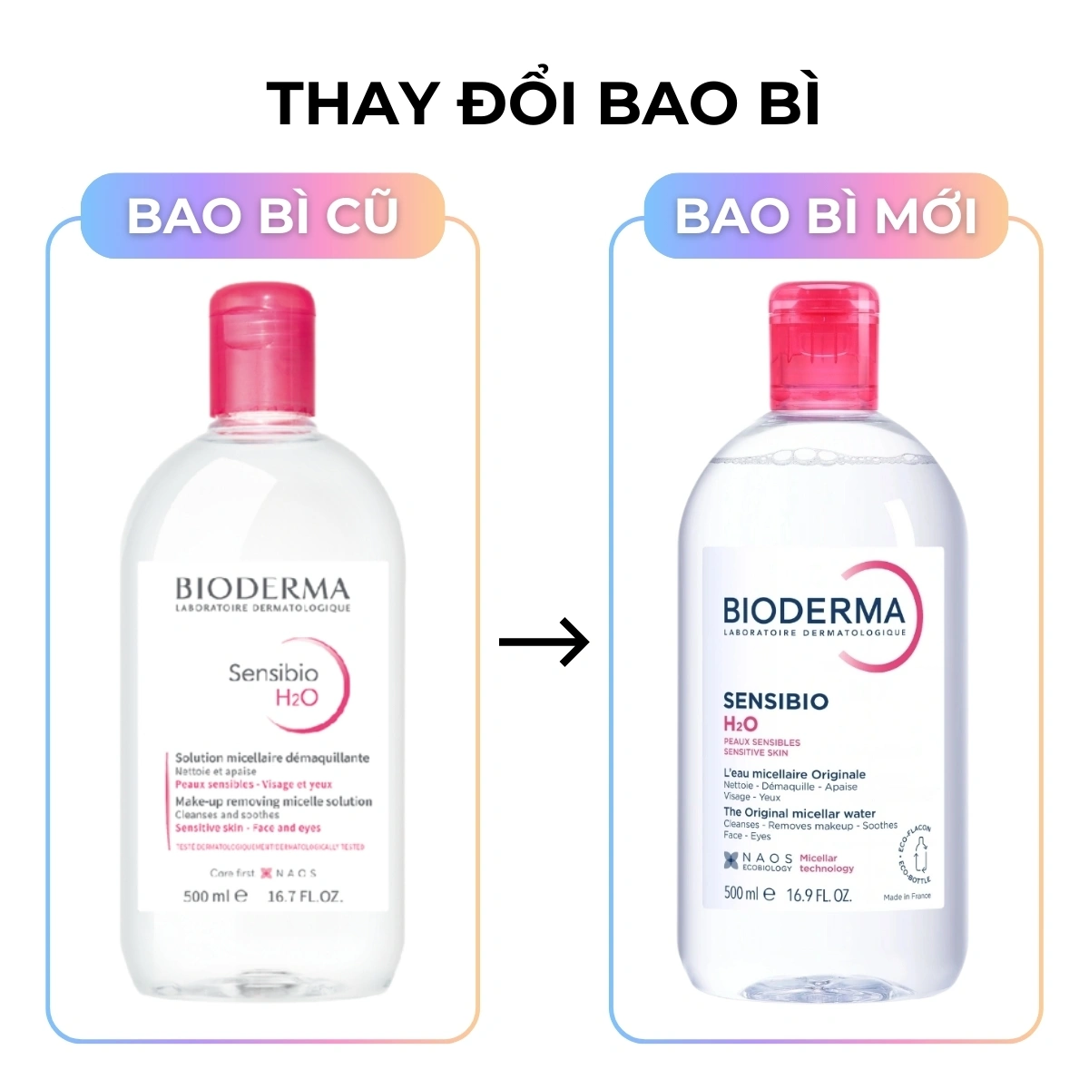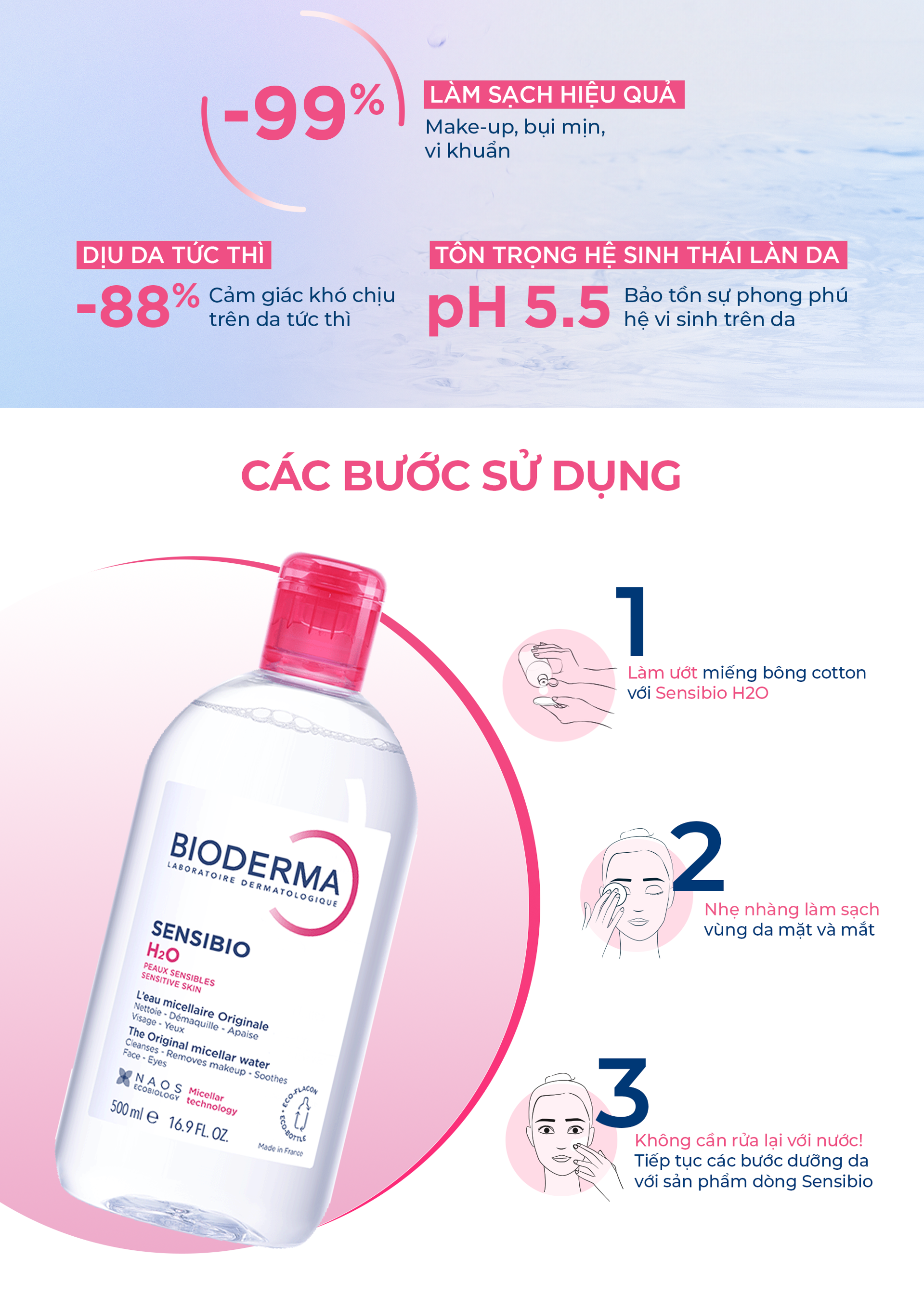 Nước tẩy trang Bioderma hồng Micellar Sensibio H2O cho da nhạy cảm: