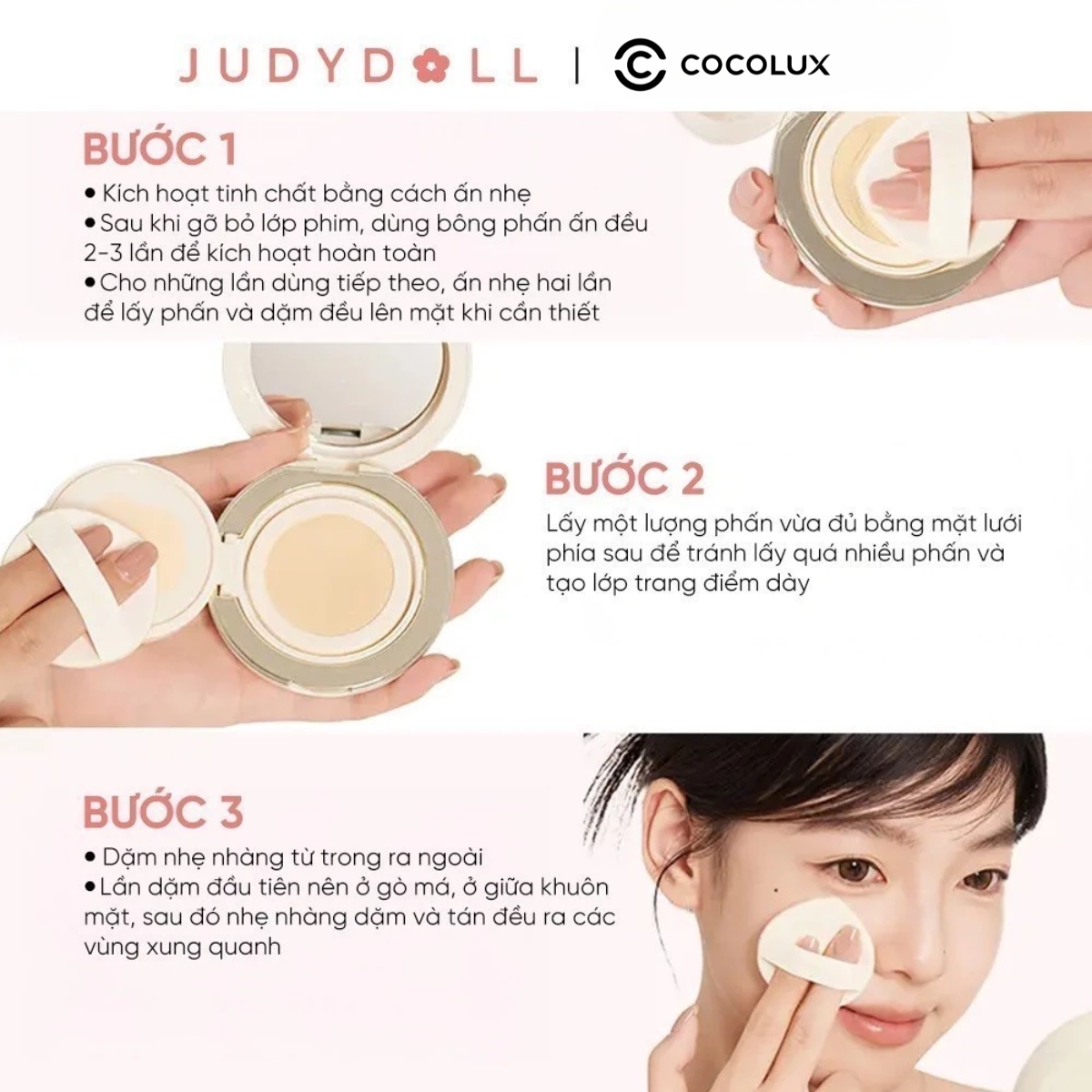 Với thiết kế nhỏ gọn, tiện lợi cùng kết cấu dễ tán, Judydoll Moisturizing Cushion là lựa chọn lý tưởng cho những ai yêu thích lớp nền tươi sáng, căng bóng nhưng không kém phần lâu trôi.