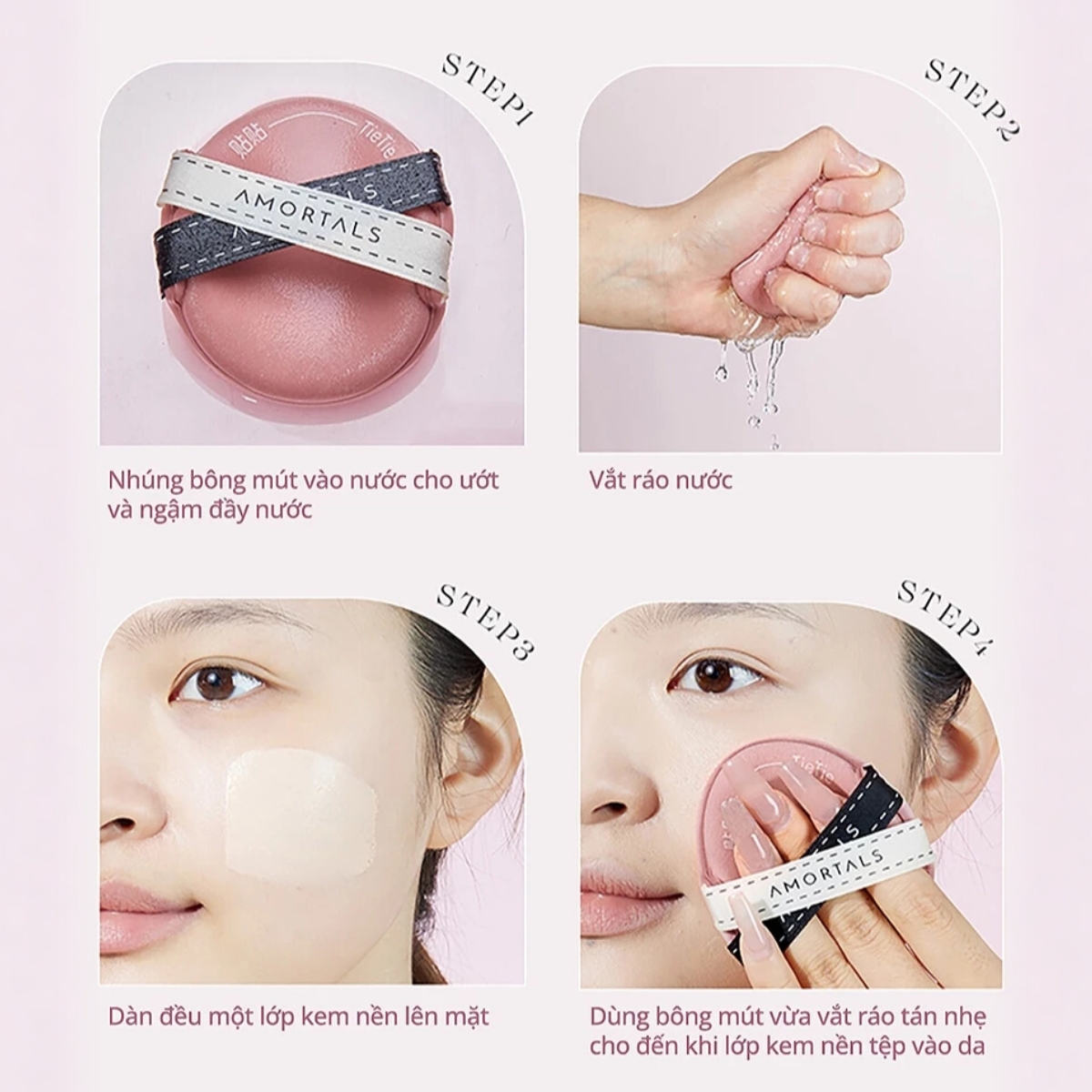 - Chất liệu mút cao cấp (rubycell 4mm): đàn hồi tốt, giúp lớp nền mịn màng và che khuyết điểm tốt hơn.