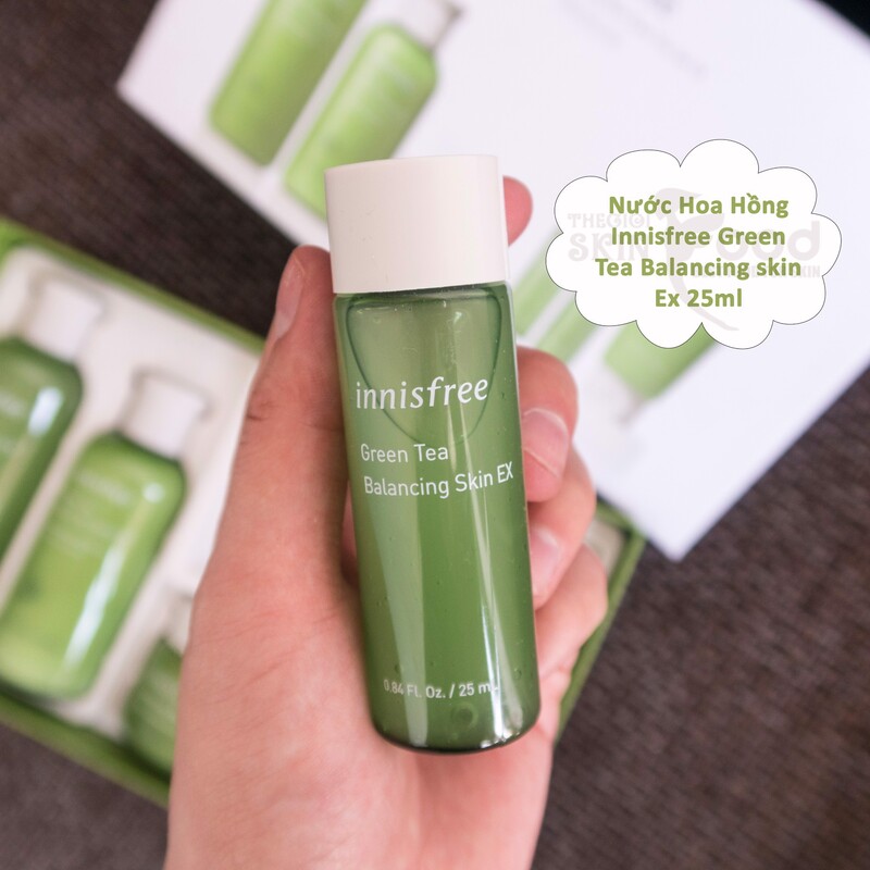 - Nước hoa hồng Innisfree Green Tea Balancing Skin Ex 25ml và Sữa dưỡng Innisfree Green Tea Balancing Lotion Ex 25ml được tặng kèm khi mua set sản phẩm.