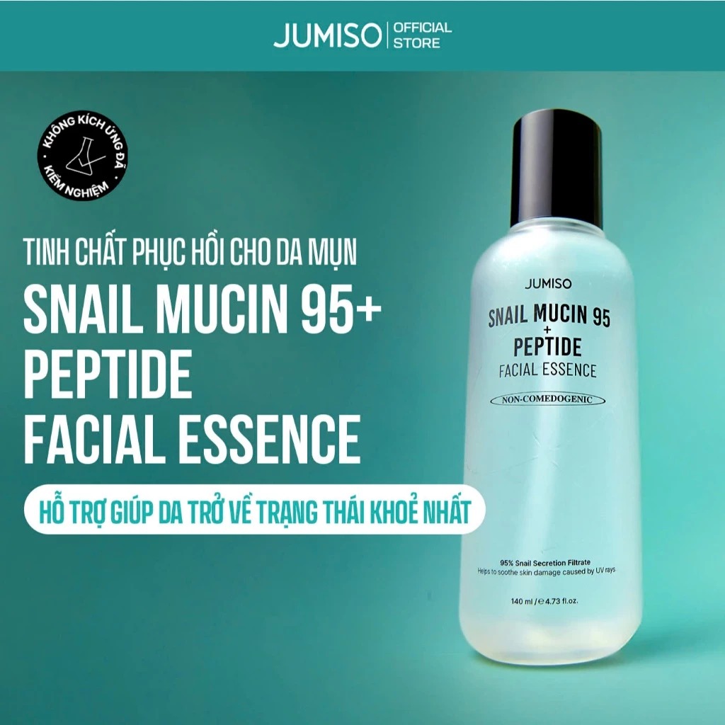Tinh Chất Jumiso Snail Mucin 95+ Peptide Facial Essence là sản phẩm dưỡng da cao cấp với chiết xuất Snail Mucin (Chất nhờn ốc sên) 95% và Peptide, mang đến giải pháp hiệu quả chống lão hóa, phục hồi và cải thiện độ đàn hồi cho da. Với 95% chiết xuất ốc sên, serum này không chỉ giúp làm lành da mà còn cung cấp độ ẩm sâu, làm mờ vết thâm, sẹo mụn, và cải thiện kết cấu da.